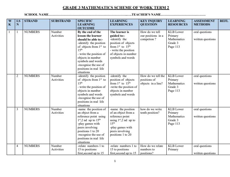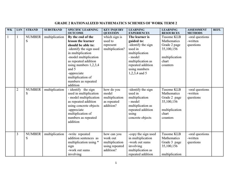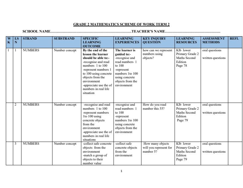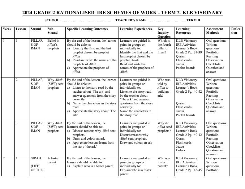 Grade 2 Schemes of Work