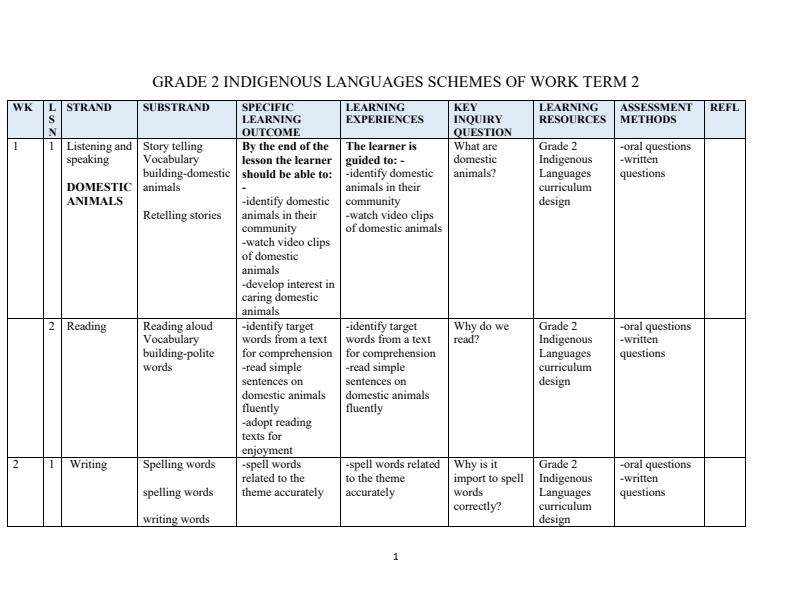 2025 GRADE 2 REVISED EDITION TUSOME ENGLISH SCHEMES OF WORK – TERM 1-3