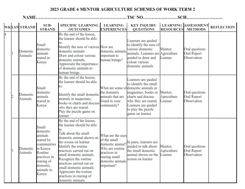 2023 GRADE 6 MENTOR AGRICULTURE SCHEMES OF WORK -TERM 2