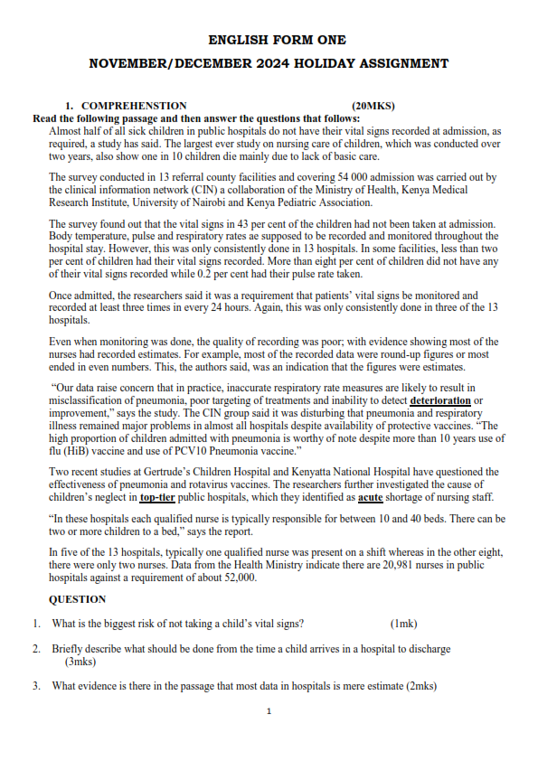 2023 Form 1 Mathematics End of Term 3 Examination With Marking Schemes