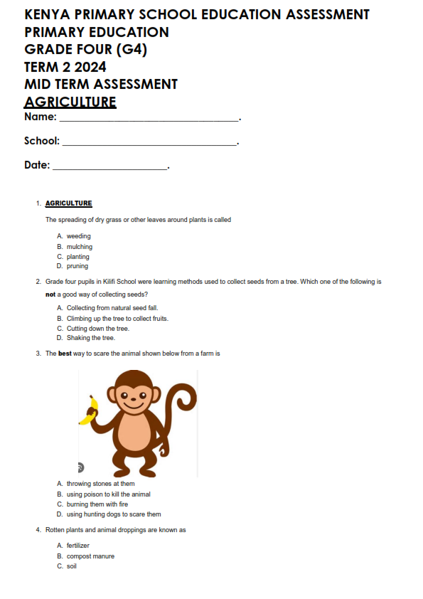 2024 Grade 4 Mid Term 2 Exams 2024 – Set