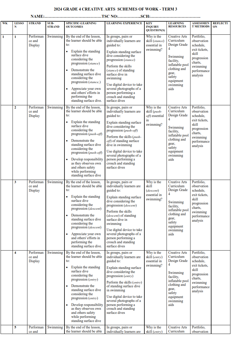 2024 GRADE 4 RATIONALIZED CREATIVE ARTS SCHEME OF WORK – TERM 3