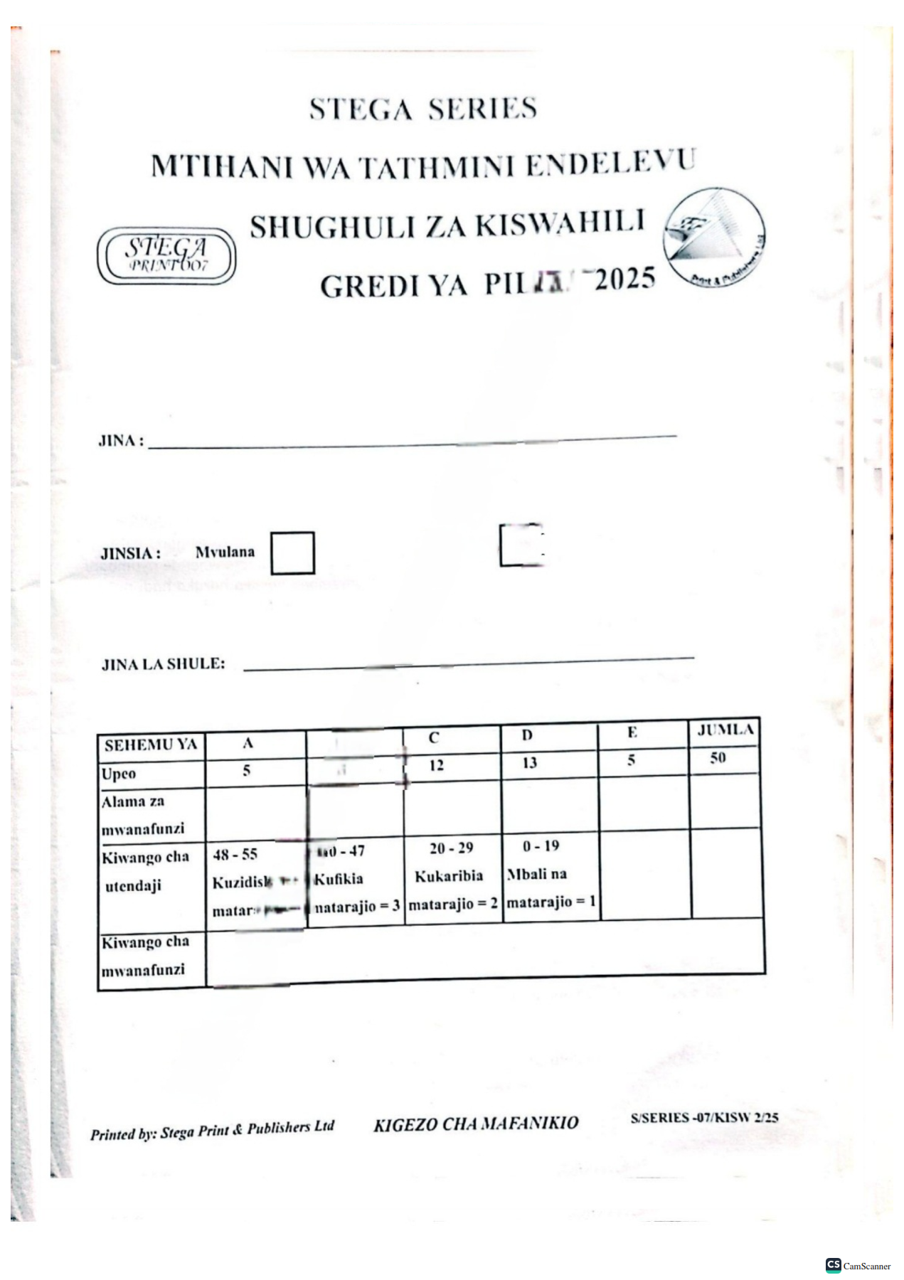 2025 GRADE 2 CBC STEGA 007 EXAMINATION