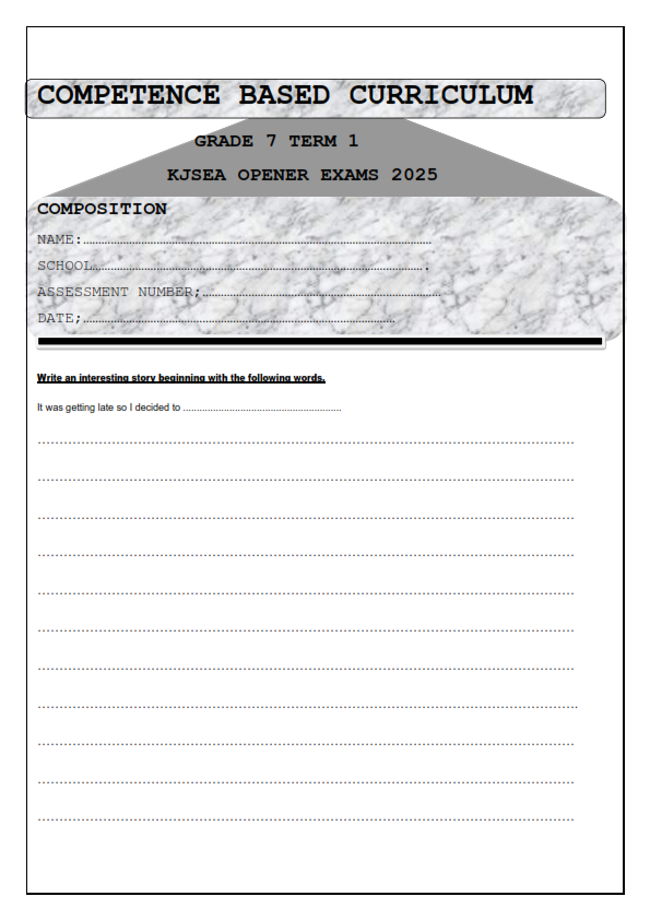 2025 Grade 7 Social Studies Term 1 Opener Exam With Marking Scheme