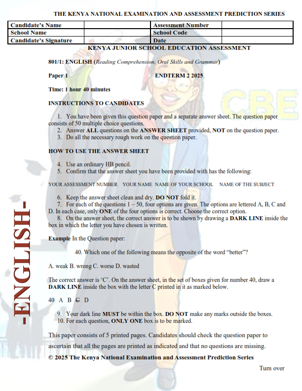 2025 Grade 8 End of Term 2 Exams with Marking Schemes