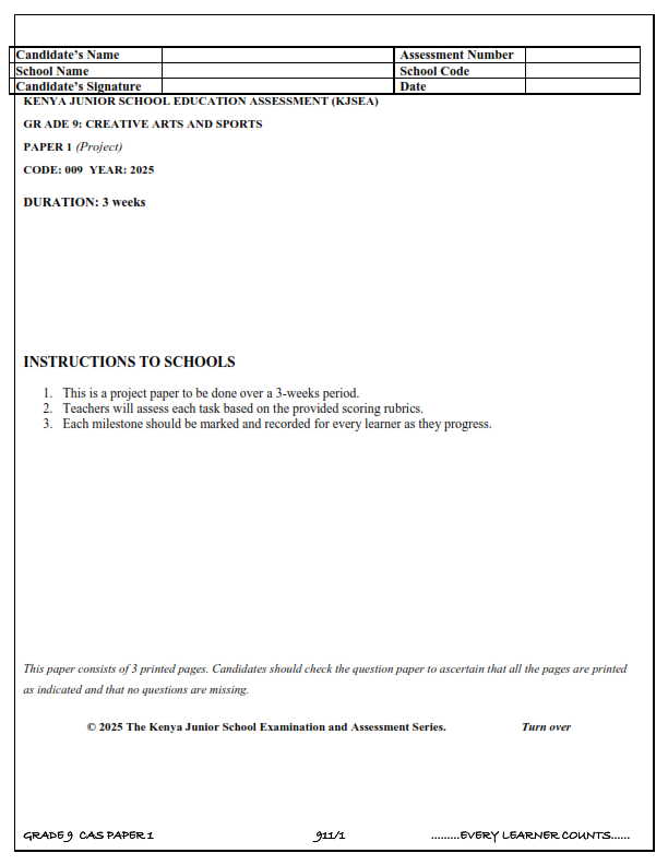2025 Grade 9 Opener Exams with Marking Schemes Term 3