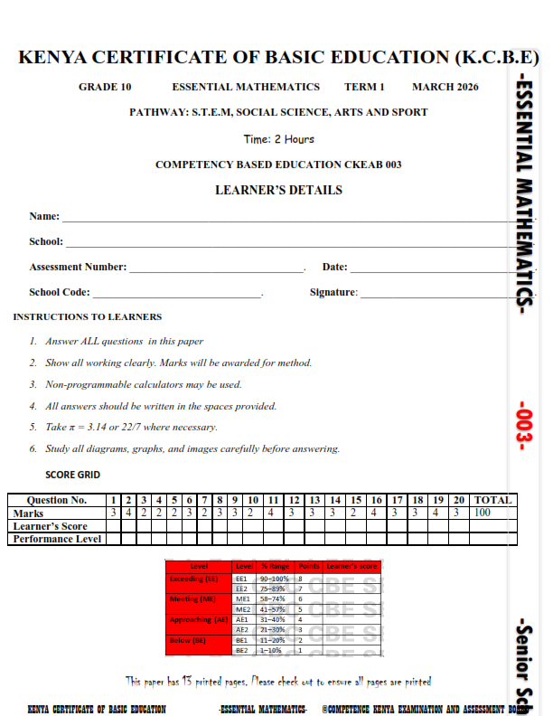2026 GRADE 10 ESSENTIAL  MATHEMATICS  END TERM 1 EXAM WITH MARKING SCHEMES