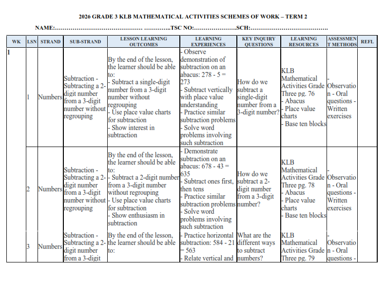 2024 GRADE 3 KLB TUSOME ENGLISH REVISED EDITION SCHEME OF WORK – TERM 1