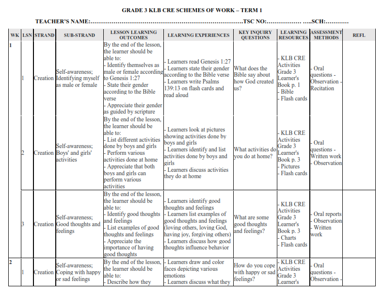 2024 GRADE 3 KLB VISIONARY ENVIRONMENTAL ACTIVITIES SCHEME OF WORK TERM 1