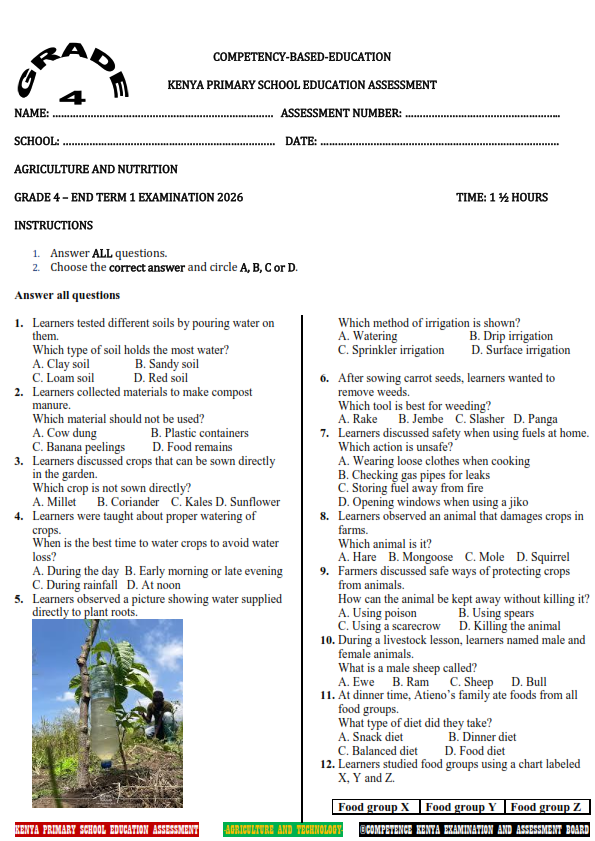 2025 Grade 4 Agriculture and Nutrition End of Term 2 Exam with Marking Scheme