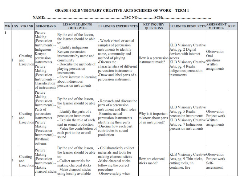 Grade 4 Scheme of Work