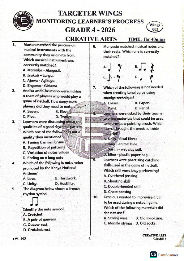 2026 GRADE 4 TARGETER 003 EXAM AND MARKING SCHEME