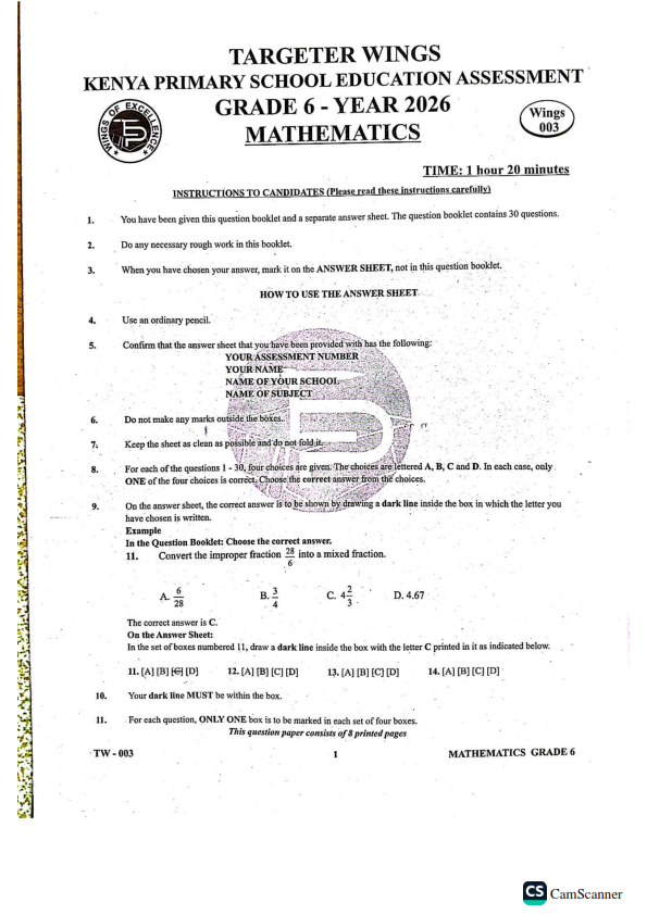 2024 GRADE 6 TARGETER WINGS JSS ASSESSMENT 005 WITH MARKING SCHEMES