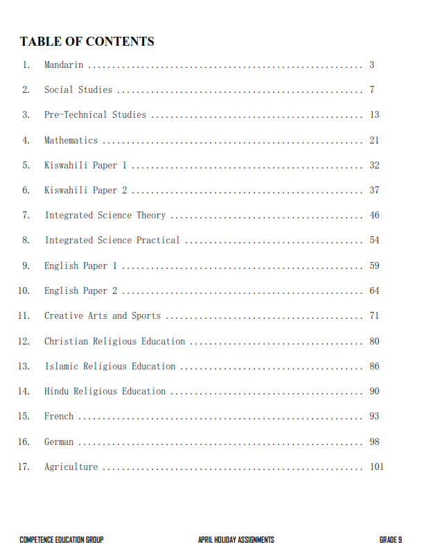 APRIL 2025 GRADE 9 HOLIDAY ASSIGNMENT WITH MARKING SCHEME – SET 1