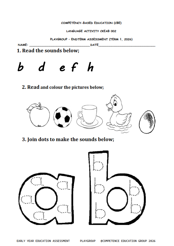 2026 PLAYGROUP ENDTERM 1 EXAM