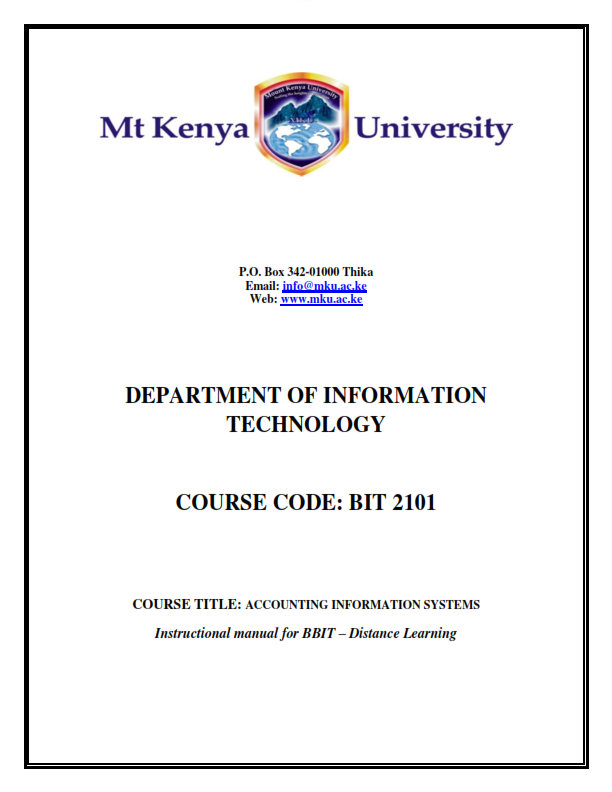 BIT 2201: ACCOUNTING INFORMATION SYSTEMS NOTES – MOUNT KENYA UNIVERSITY