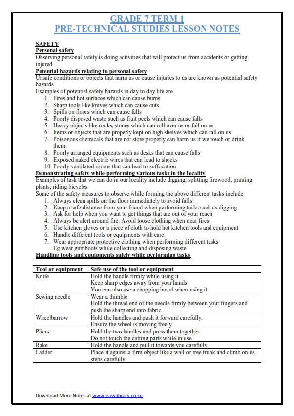 GRADE 7 TERM 1 PRE-TECHNICAL STUDIES LESSON NOTES