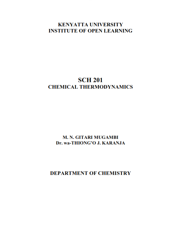 SCH 201 CHEMICAL THERMODYNAMICS NOTES – KENYATTA UNIVERSITY